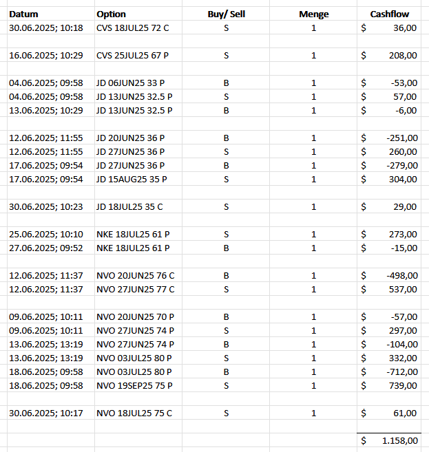 1.158 $ Cashflow – meine Optionstrades im Juni 2025